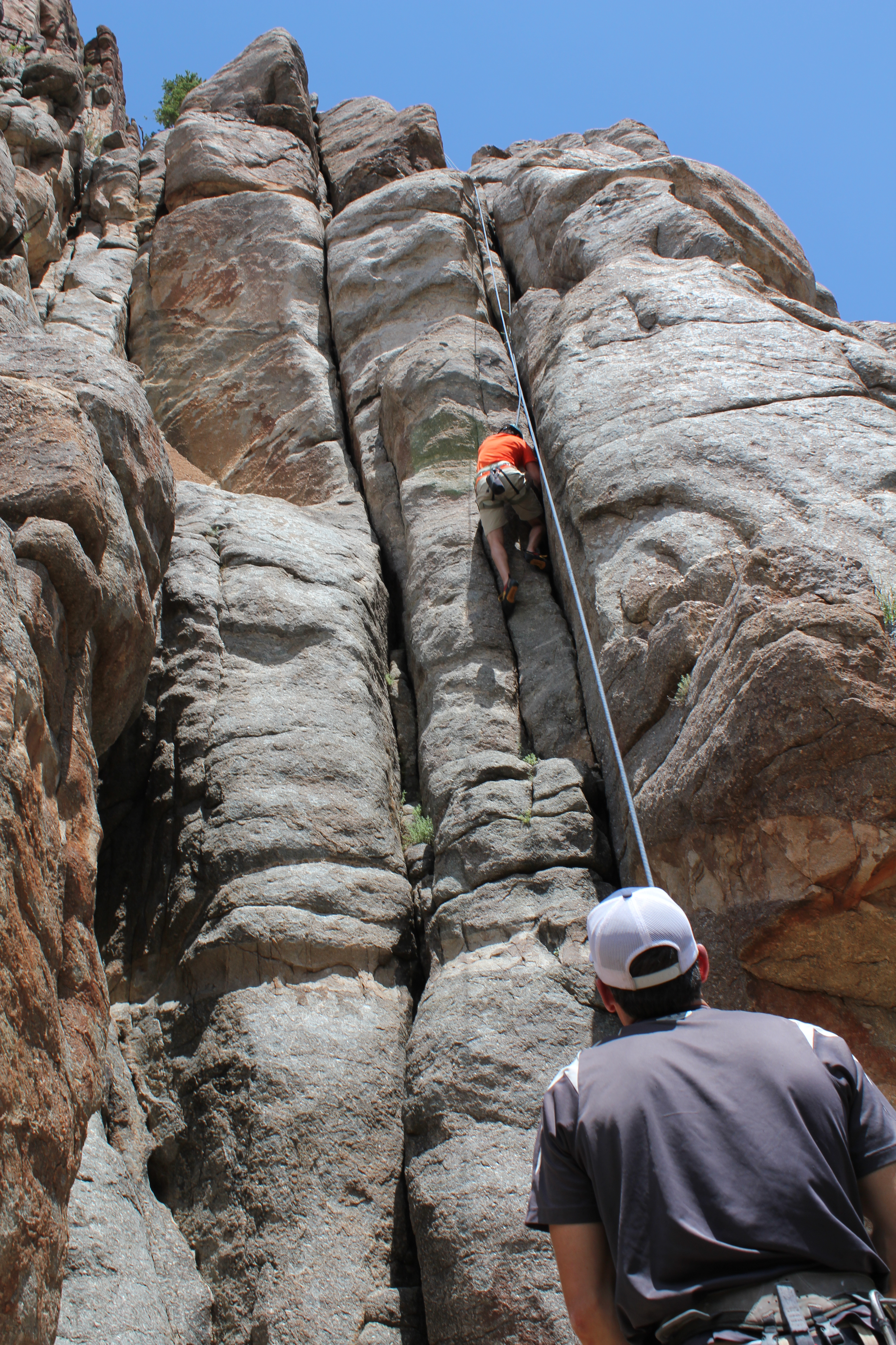 After putting up a few successful routes (and one not so successful which resulted in a nasty bloody shin for me), we packed up and headed for our next spot. We had told our guides that we wanted a varied experience, so they brought us to a different part of the valley, farther west, and told us that we would be doing some crack climbs. This was a completely new experience, and I found myself in a love-hate relationship with it. The cracks and chimneys seemed to necessitate less finesse, and more core strength and mental toughness. It was difficult, but Molly and I both had a good time learning a new skill.