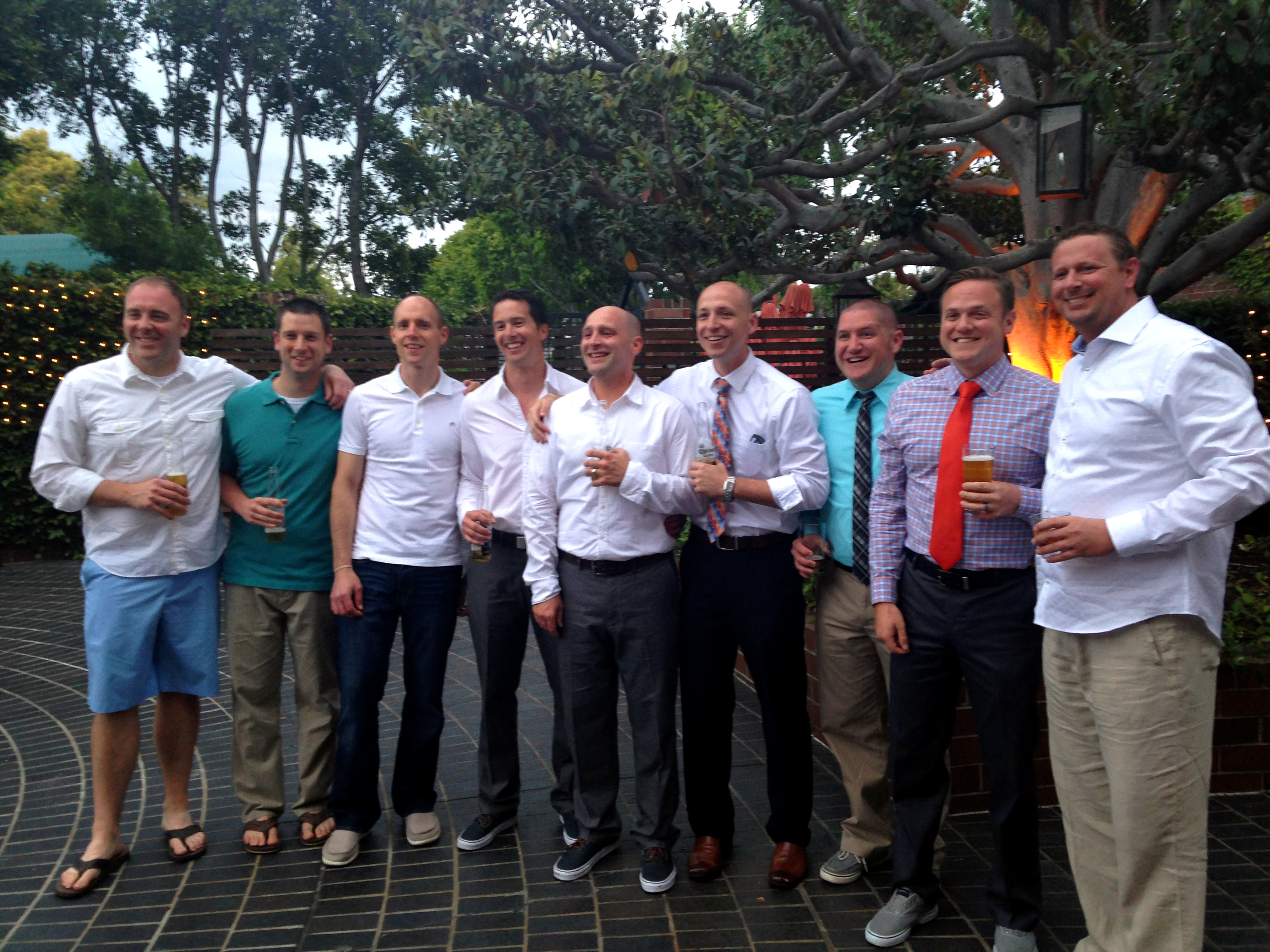 Leif is getting married!!!!! A couple of our best friends, Leif and Adrienne, who you may remember from our Going, Going, Back, Back to Cali, Cali post were getting married in Santa Monica, California. Even better, almost 20 of our college friends were making the journey west to join in the festivities….and leaving the kiddos at home!