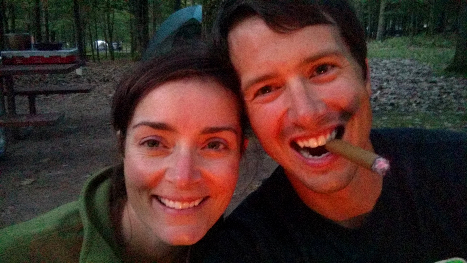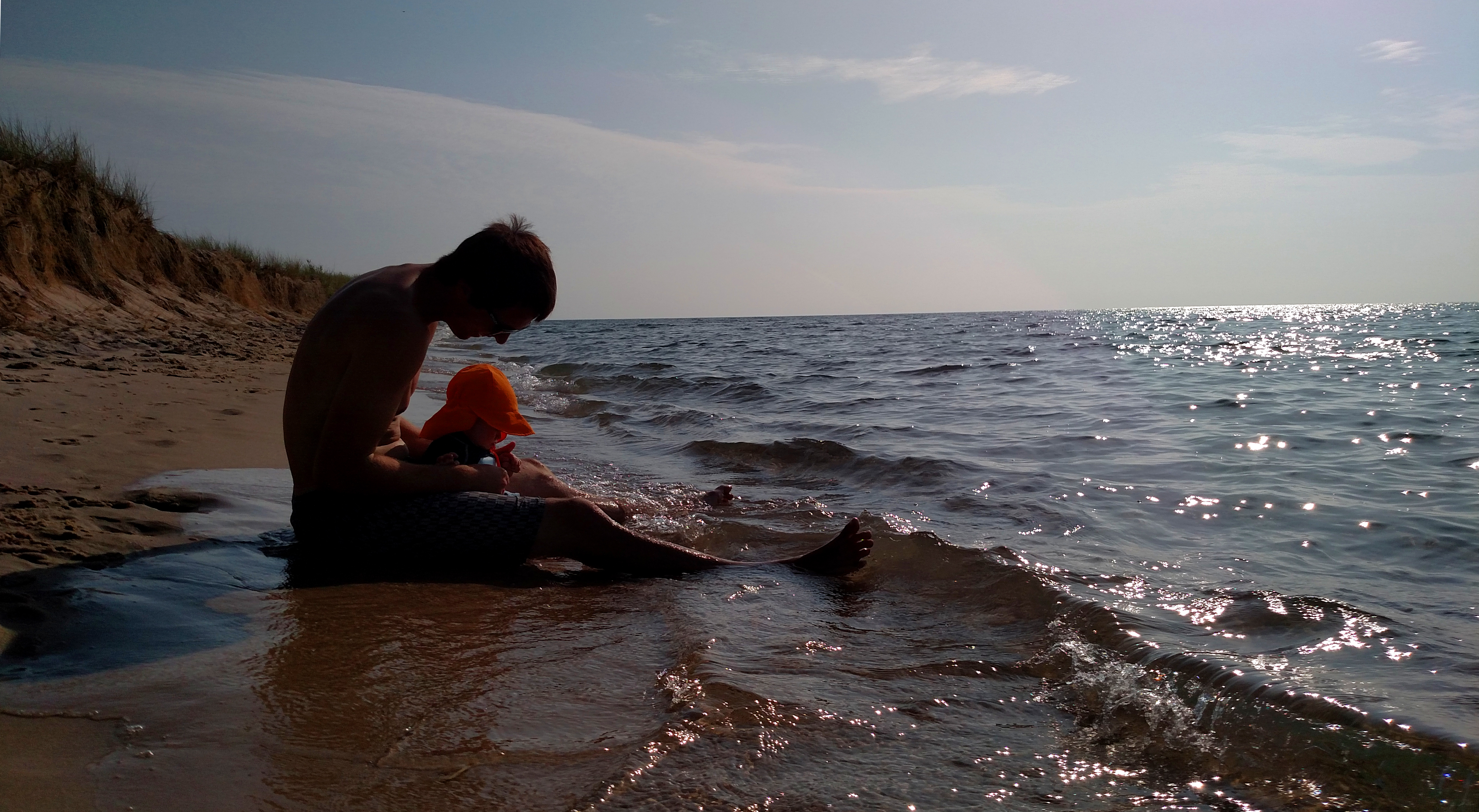 Saturday night was spent at the Channel Campground in Muskegon State Park. The campground was ok, but the sites had a good mixture of garbage in the sand and the nearby boat channel was quite busy and loud. Additionally, it was a significant walk on a fairly busy campground road to get to the beach. We made the most of it and enjoyed the sunset anyway. After putting Crosby down in the pack-and-play in the tent, Molly and I stayed up and enjoyed some adult beverages by the fire.