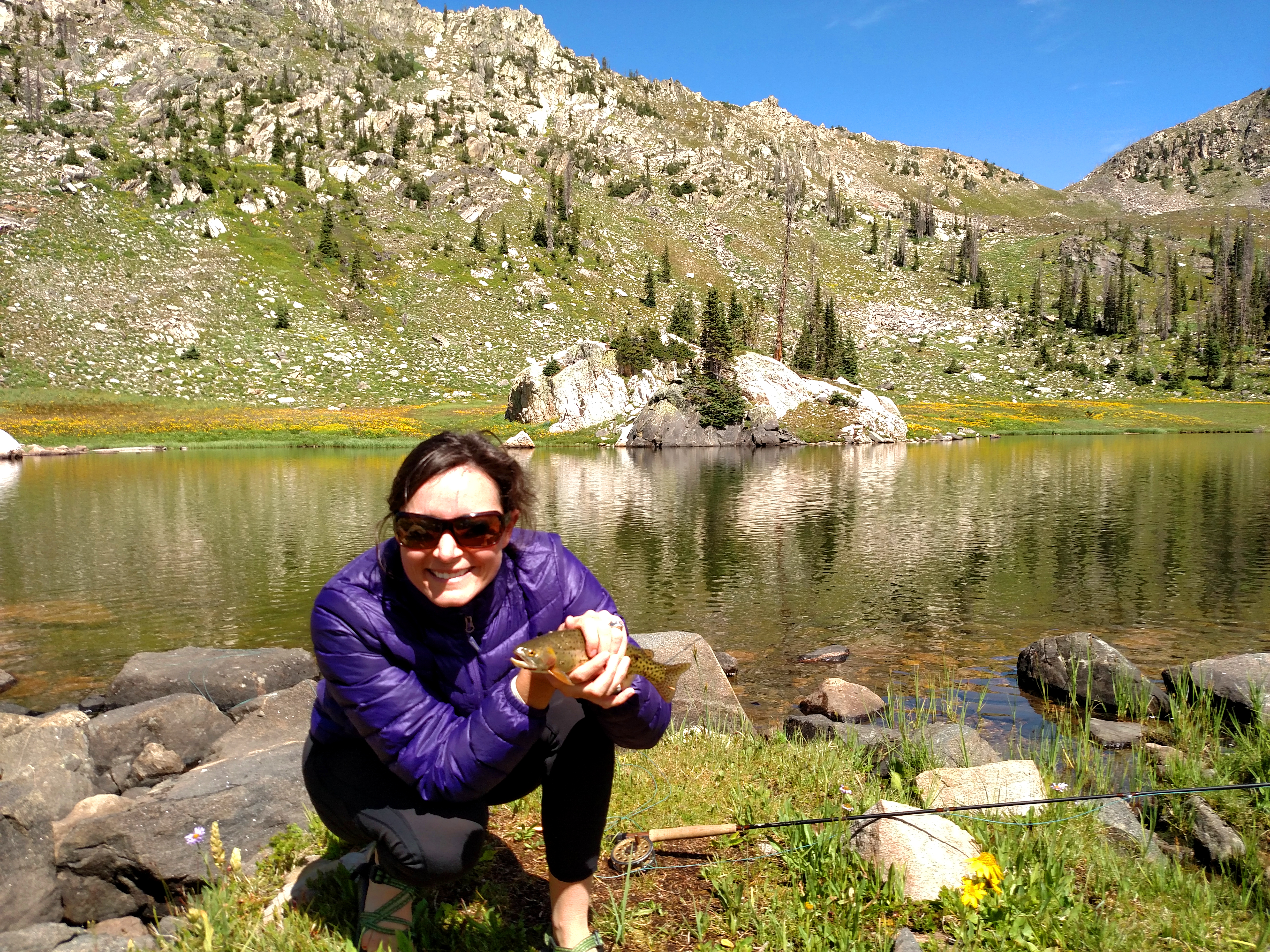 Our original plan was to camp in the backcountry for three nights, however, the forecast for our final day was not ideal and neither one of us relished the thought of packing up wet gear. We decided to enjoy our second morning and then head down the trail in the early afternoon. Another, smaller storm had passed through in the wee hours of our second night and finally brought us some fishing luck. Molly and I fished away the morning, both catching some decent brookies and cutthroat.